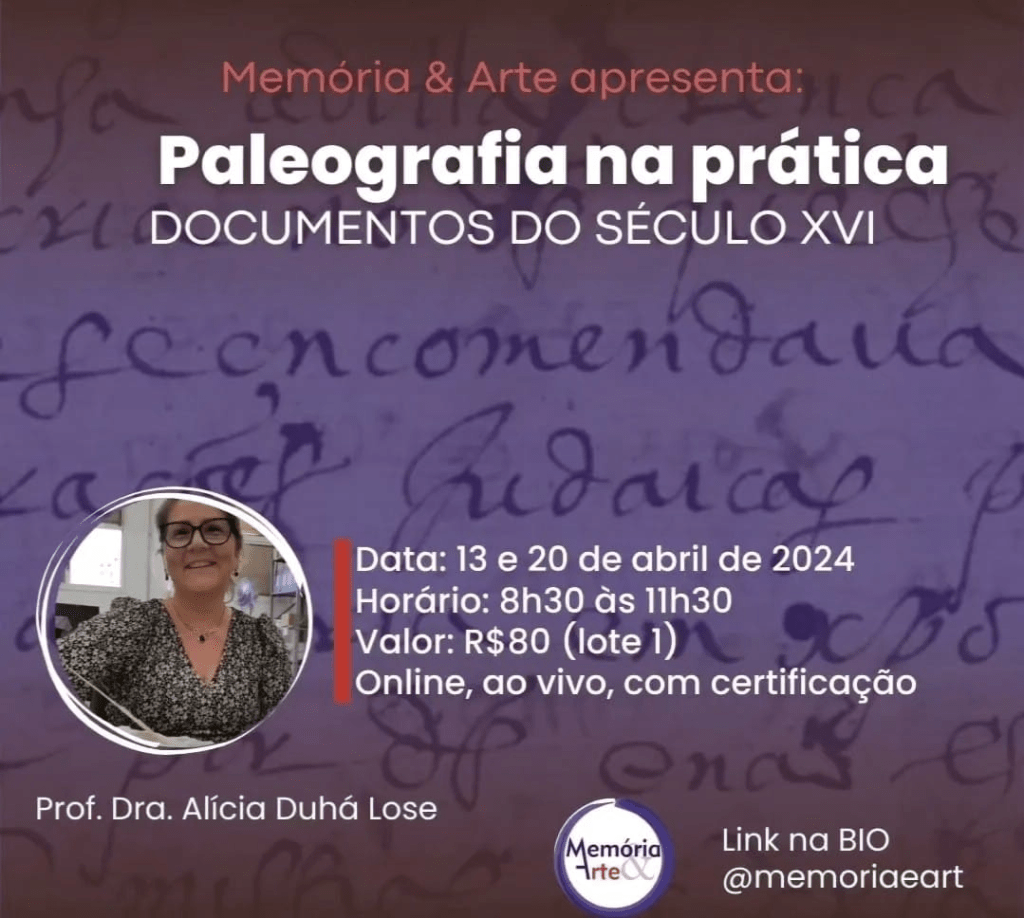 17 de junho de 2023 – Curso Nível Básico: Paleografia 2 – Leitura Paleográfica, pelo Memória e Arte
