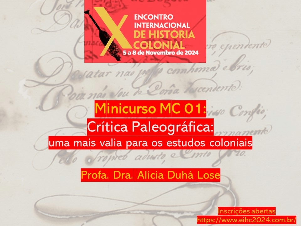 05 e 06 de novembro – Minicurso Crítica Paleográfica: uma mais valia para os estudos coloniais