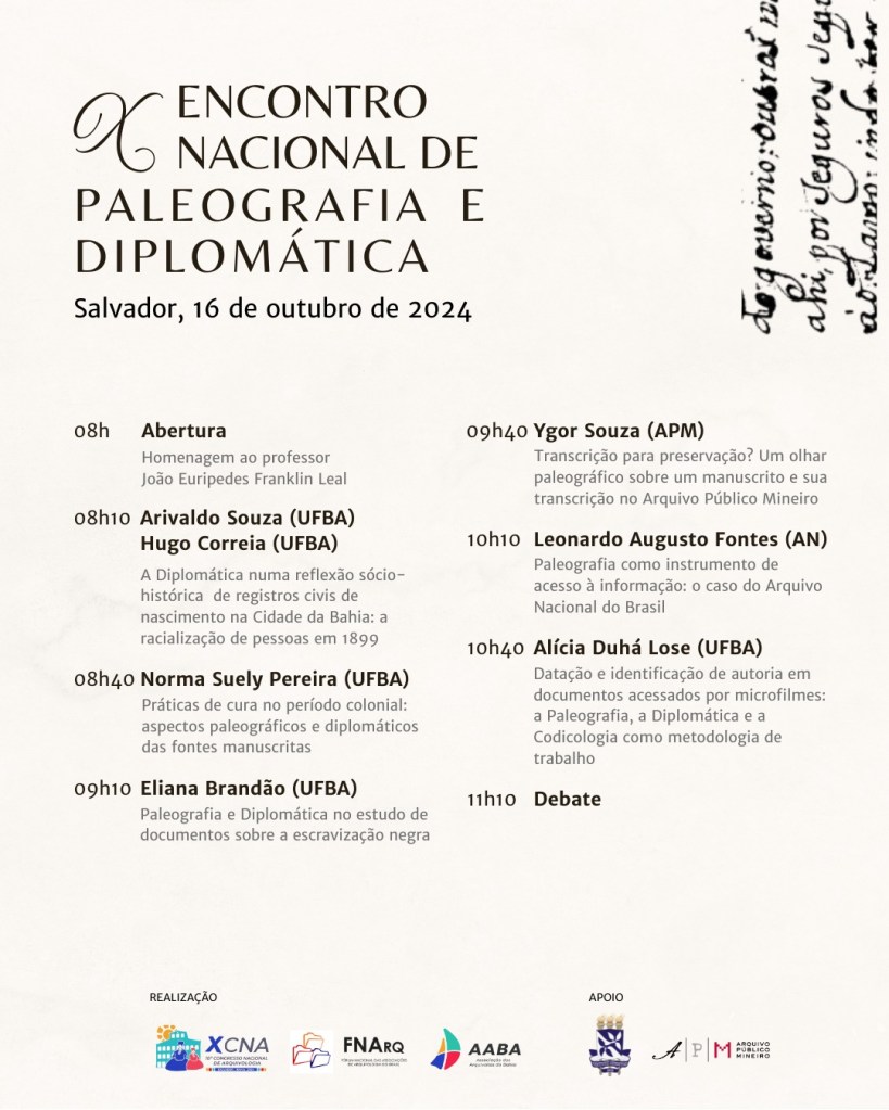 16 de outubro – X Encontro Nacional de Paleografia e Diplomática no X Congresso Nacional de Arquivos